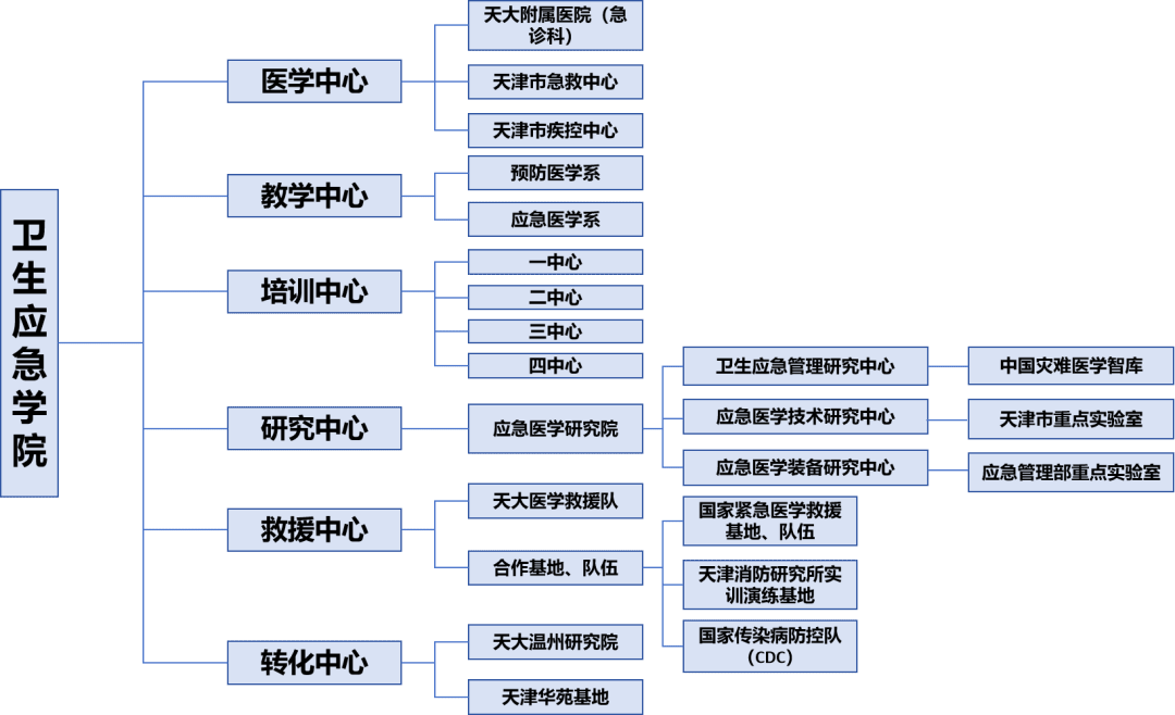 学院建有国家应急管理部医学救援关键技术装备重点实验室、天津市灾难医学技术重点实验室、中国智库索引(CTTI)来源智库等多个国家级省部级科研平台。