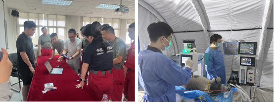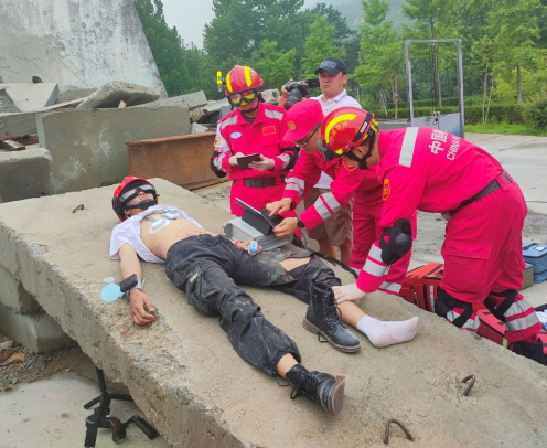 演练中,新型可穿戴多生理参数智能监测系统、CI/CS现场快速诊断新技术新设备得到检验,并与人工智能、数据挖掘等技术融合,构建了动态评估-监测-预警云平台。通过智能网关,现场数据实时传输至后方医疗团队,实现远程救治指导及伤员后送。中国国际救援队运用自主研发的医学装备,如电子皮肤传感器,有效监测伤员状态,并借助智能辅助诊断系统快速决策。