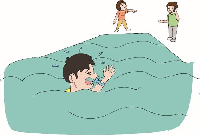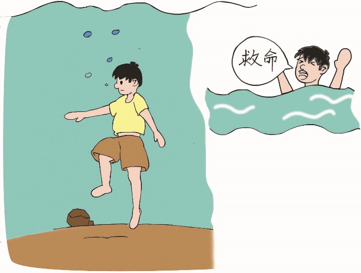 ⑦如果在水深2~3米的游泳池或在底部坚硬的水域或河床发生淹溺,由于底部坚硬,落水者可在触底时用脚蹬加速上浮,浮出水面立即呼救,同样不要害怕再次下沉。如此反复,坚持到救援人员到来。