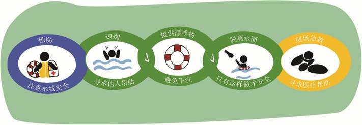 美国由于改进了急救系统,淹溺死亡率已从2000年的1.45人/10万人降低到1.26人/10万人。欧洲复苏协会提出了淹溺生存链的概念,它包括五个关键的环节:预防、识别、提供漂浮物、脱离水面、现场急救。