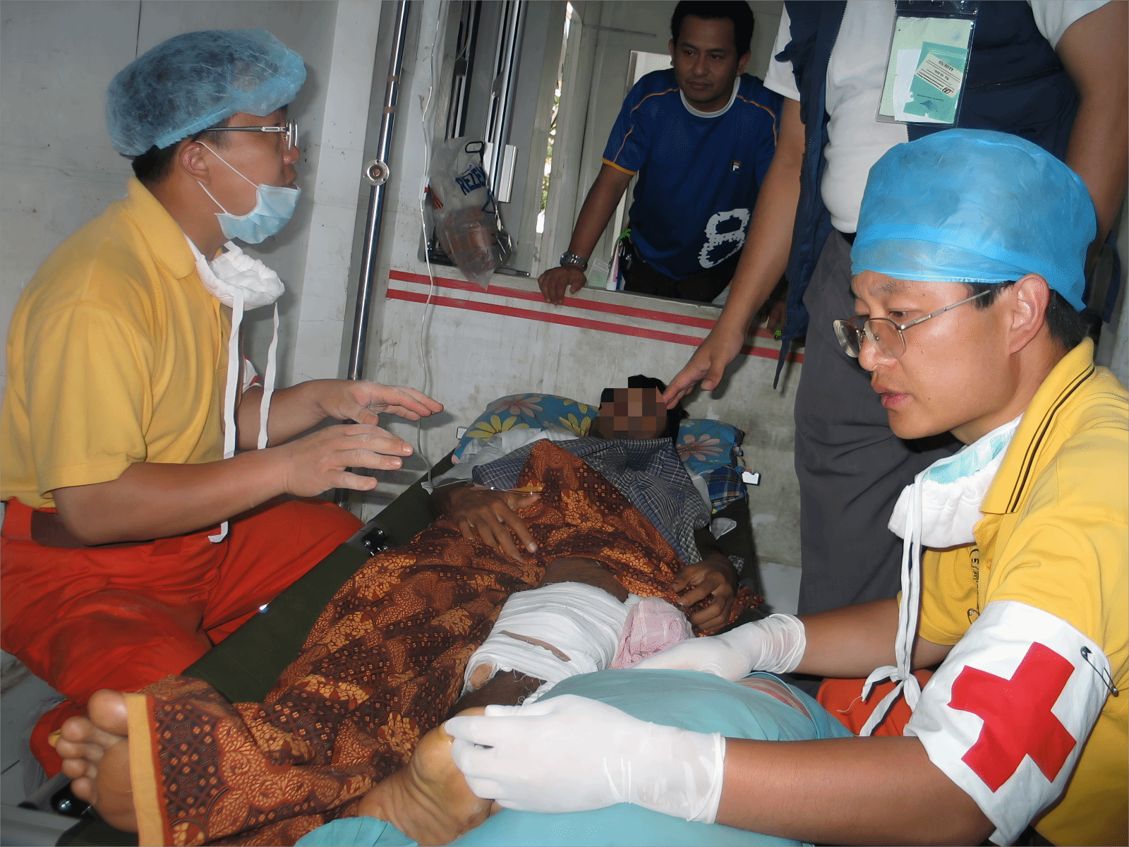 2004年12月,印尼苏门答腊岛近海发生9级地震,引发了人类有史以来波及范围最广、最严重的海啸,伤亡人数达30万。学院名誉院长侯世科、院长樊毫军作为救援队骨干赶赴灾区,参与了灾民安置点医疗巡诊,搭建流动医院,参与多国联合转运伤员,创建最大的国际病区—中国病区。学院在高热、高湿环境地震海啸、国际救援合作等方面积累了宝贵经验,印尼总统苏西诺、副总统卡拉亲自接见救援队,对我们所做出的贡献给予高度评价。习近平主席在2013年访问印尼时讲到:“本次救援是新中国成立以来,最大规模的对外救援行动”。