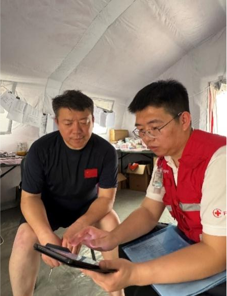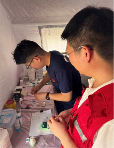 卫生应急学院吕琪教授携带科技部重点研发计划项目研发设备多生理参数监测系统、血钾/肌酐POCT检测仪、挤压综合征智能辅助诊断系统,可实现挤压综合征伤员早期快速诊断和伤情评估,这些装备协助中国救援队对伤员进行早期评估及救治,为伤员的现场救治提供了科技支撑。灾后灾区天气炎热,卫生条件差,细菌和病毒极易滋生,水源也有可能受到不同程度污染,吕琪教授对灾难安置点的民众的饮食、饮水卫生,环境消杀知识等进行科普宣讲,预防灾后传染病疫情的发生。
