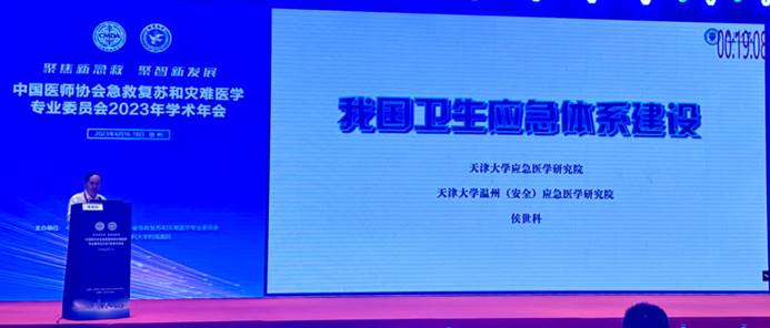 中华医学会灾难医学分会前任主任委员、天津大学医学部应急医学研究院名誉院长侯世科教授致辞