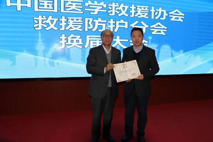 李宗浩为救援防护分会新任会长颁发证书