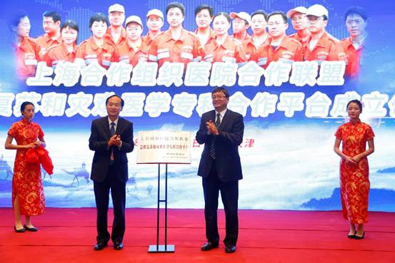 中国医院协会副会长、上合组织医院合作联盟中方轮值主席温浩与天津大学灾难医学研究院院长侯世科为合作平台的成立进行了揭牌。
