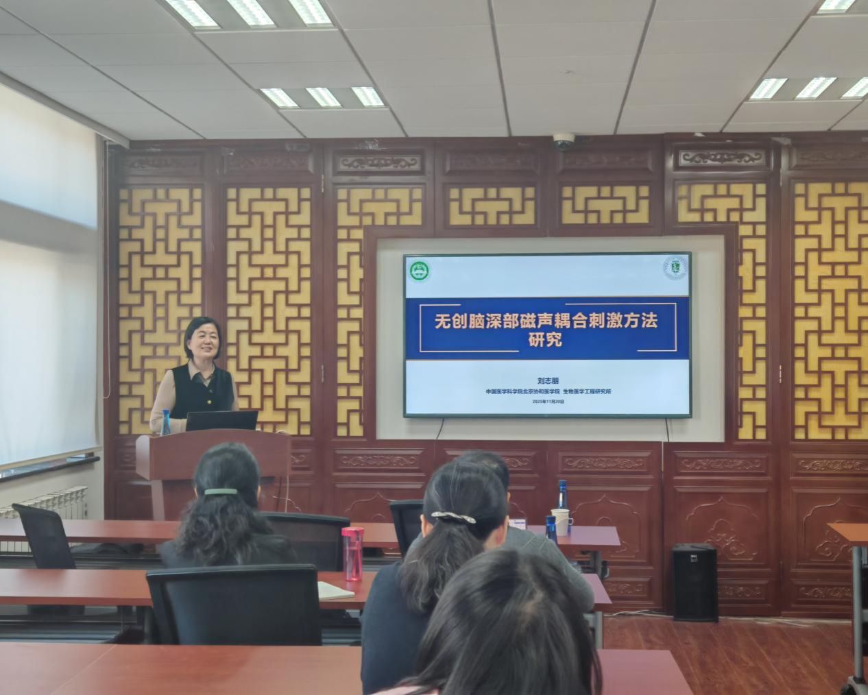 2025年11月20日,卫生应急学院第三十期“卫智汇大讲堂”成功举办。本次讲座聚焦“无创脑深部磁声耦合刺激方法研究”主题,有幸邀请到中国医学科学院生物医学工程研究所刘志朋研究员担任主讲嘉宾。院长樊毫军教授带领学院教学科研岗教师和研究生参加此次讲座。讲座由应急医学装备研究中心秘书李佳蒙、助理研究员谭如欣主持。