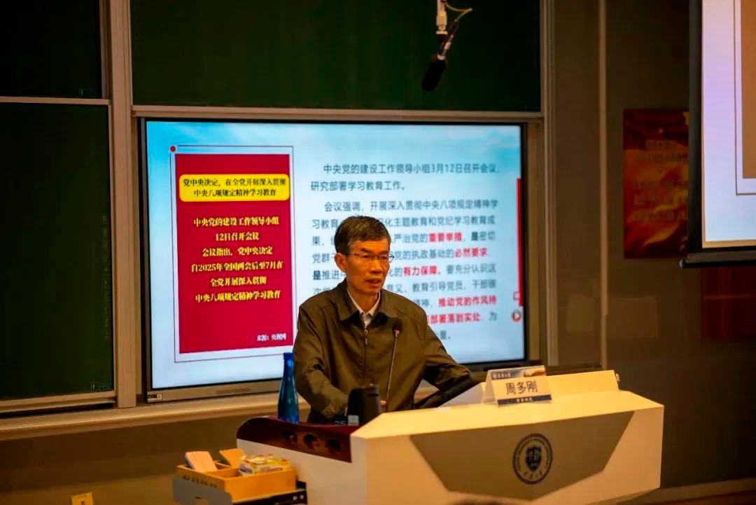 5月7日上午,读书班邀请天津市委党校周多刚教授作题为《深入学习贯彻习近平总书记关于加强党的作风建设的重要论述和中央八项规定精神》专题辅导报告。医管处及医学部各学院中心组成员、师生党员近300人参加了报告会,报告会由生命科学学院党委书记牛志广主持。