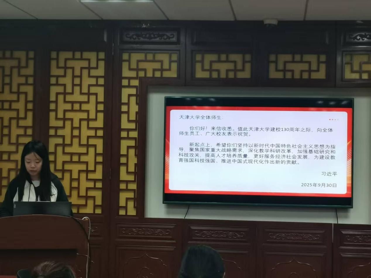 2024级硕士生团支部书记孙晓涵表示:习近平总书记的重要回信不仅是对天津大学的鼓舞与激励,更是饱含着党中央对高等教育和青年一代的殷切期望,是我们共同肩负的时代责任。广大团员青年要将回信精神转化为立志报国的不竭动力,把每一次实验、每一次调研、每一次志愿服务,都当作践行回信精神的具体场景。