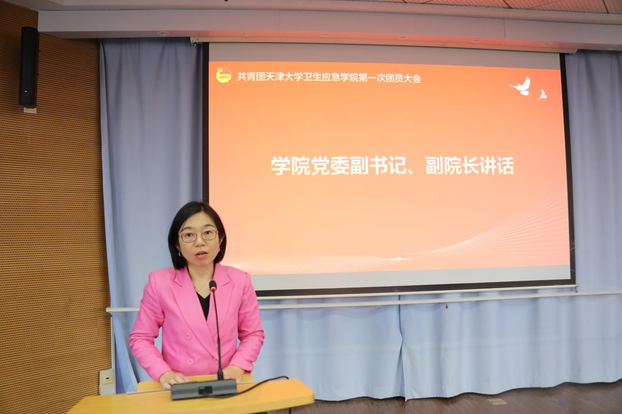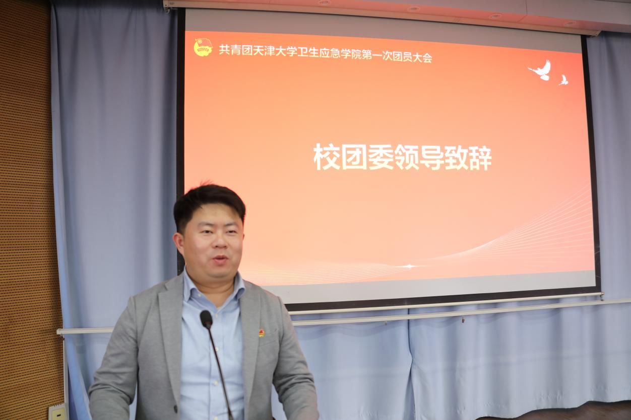 刘洋代表天津大学团委致辞。他首先对大会的召开表示热烈祝贺,并充分肯定了卫生应急学院团委在思想引领、组织建设、权益维护、志愿服务等方面取得的扎实工作成效。他指出,卫生应急事业是守护人民生命健康的重要屏障,青年团员作为学院发展的生力军,肩负着传承应急精神、筑牢健康防线的时代使命。卫生应急学院团委要深入学习贯彻习近平新时代中国特色社会主义思想和习近平总书记关于青年工作的重要论述,以贯彻习近平总书记重要回信精神为抓手,引导广大团员青年坚定听党话、跟党走的政治信念,在专业学习中深耕细作,在应急实践中勇挑重担,将个人成长融入民族复兴伟业的时代浪潮。