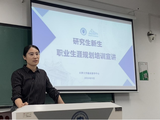 学院还邀请到就业指导中心的游莅荟老师,为全体研究生新生带来职业生涯规划培训宣讲她分析了近五年的毕业生去向,介绍就业信息的获取方式,为大家带来求职“干货”。鼓励同学们积极参与社会实践,通过实习、参与项目等方式提升个人求职竞争力,未来能在各自的领域内发光发热,为实现中华民族伟大复兴的中国梦贡献青春力量。