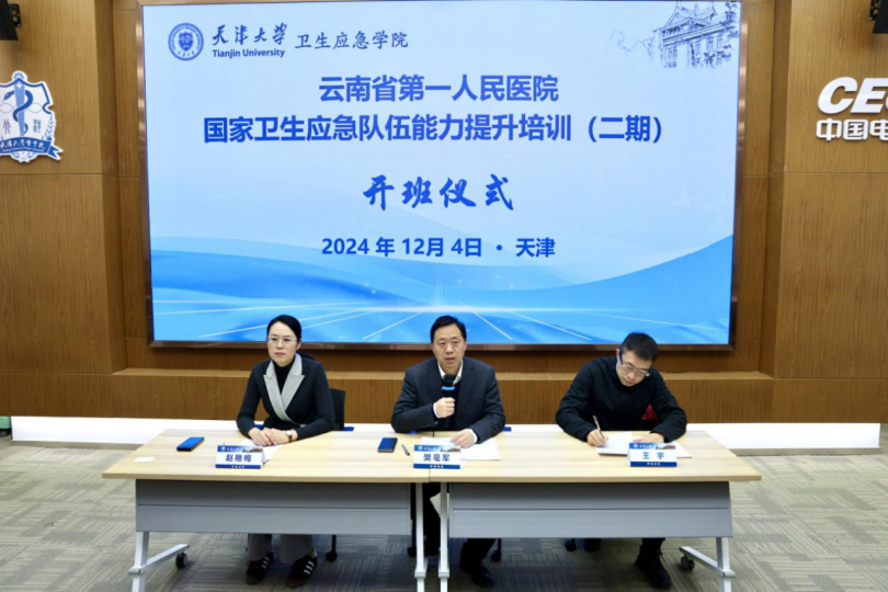 在12月4日的开班仪式上,云南省第一人民医院应急办主任王宇,天津大学卫生应急学院院长樊毫军、副院长赵艳梅共同出席,开班仪式由赵艳梅主持。