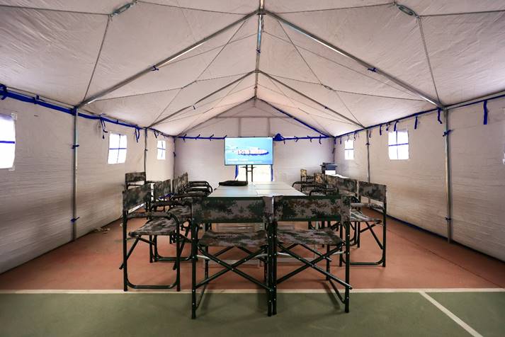 开班仪式后,由培训中心老师对演练脚本进行详细讲解,结合全体队员专业进行分组,并根据演练过程中可能涉及到的现场应急救治技术(如通气、止血、包扎、固定、搬运)进行现场培训教学,并在演练现场进行了帐篷搭建、设备布置等工作。