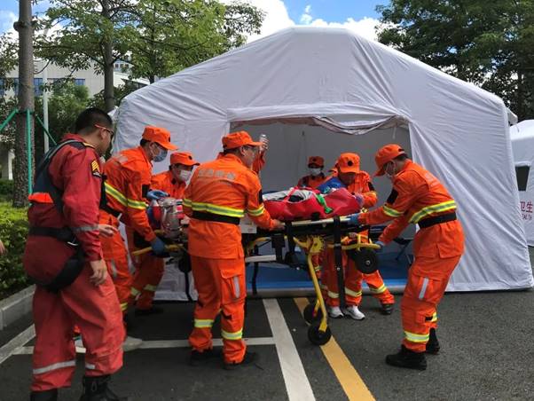 本次演练由天津大学应急医学研究院联合深圳大学总医院、深圳市东部通用航空有限公司、广东医通软件有限公司、中国移动深圳分公司、深圳迈瑞医疗公司、深圳市天空汽车网络有限公司承办,在天津大学应急医学研究院副院长范斌带领的团队指导下,共21名救援队队员参演了首次5G+ECMO大湾区航空医疗应急救援演练!