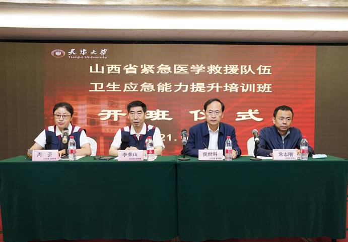 2021年5月19日,山西省人民医院紧急医学救援队伍卫生应急能力提升培训班在山西太原顺利开班。山西省人民医院院长李荣山、副院长周芸,山西省卫健委应急办主任常志刚,天津大学灾难医学研究院院长侯世科,以及来自山西省人民医院省级紧急医学救援队71名参训队员参加了开班仪式,开班仪式由周芸主持。