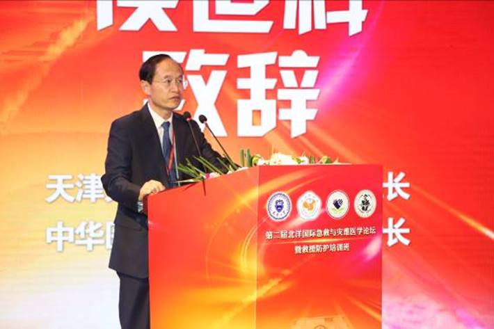 赵美蓉首先向与会嘉宾回顾了天津大学医科发展的历程和取得的一系列丰硕成果,她介绍灾难医学研究院是天津大学在国内成立的首个专门从事卫生应急、灾难医学专业教学、培训、科研的机构,侯世科教授、樊毫军教授作为国内灾难医学领域的知名专家,将部队灾难救援的实战经验与天津大学工科优势资源有机结合,多次获得国家科技进步奖、天津市科技进步奖,在灾难医学领域起到开拓示范的作用,也为天津市乃至国家突发事件应急救援做出了巨大贡献。她还表示,本次论坛的举办,汇聚各方精英,共商良策、共谋发展、意义重大、影响深远,必定会为助推我国急救与灾难医学学科的建设发展,发挥积极地作用。