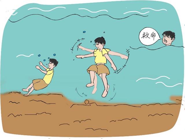 ⑦如果在水深2~3米的游泳池或在底部坚硬的水域或河床发生淹溺,由于底部坚硬,落水者可在触底时用脚蹬加速上浮,浮出水面立即呼救,同样不要害怕再次下沉。如此反复,坚持到救援人员到来。