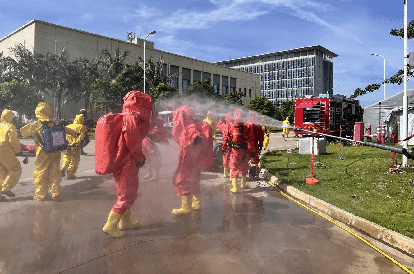 演练现场,从伤员搜救、洗消到转运、救治,各环节环环相扣,流程顺畅,国家危险化学品应急救援海南炼化队、国家应急医学救援队、国家紧急医学救援队(海南)三支救援队伍默契配合,生动演绎“救援-洗消-医疗”一体化模式,赢得现场专家团队和观摩队伍的好评。