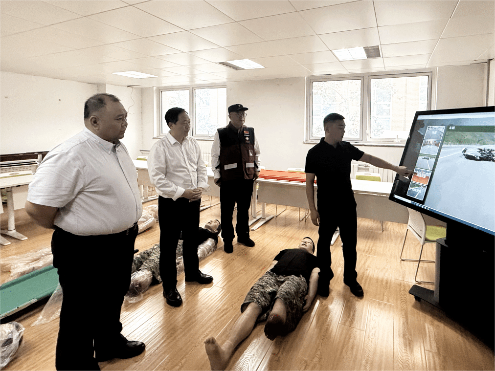 评估专家组深入现场开展核查工作。在学院北侧、24号教学楼二楼等区域,专家们先后对救援队列队风貌、医疗应急办运行机制、装备库房及个人携行装备的配置与管理、培训演练工作、应急响应流程等进行了细致检查。通过实地查看、现场问询等方式,专家们对救援队展现出的规范化建设水平和专业素养给予高度认可。在学院实验室,专家们重点查看了实验室平台、科研成果及成果转化情况,专家们认为学院科研工作和成果为救援队实战能力提升提供了有力的技术支撑。