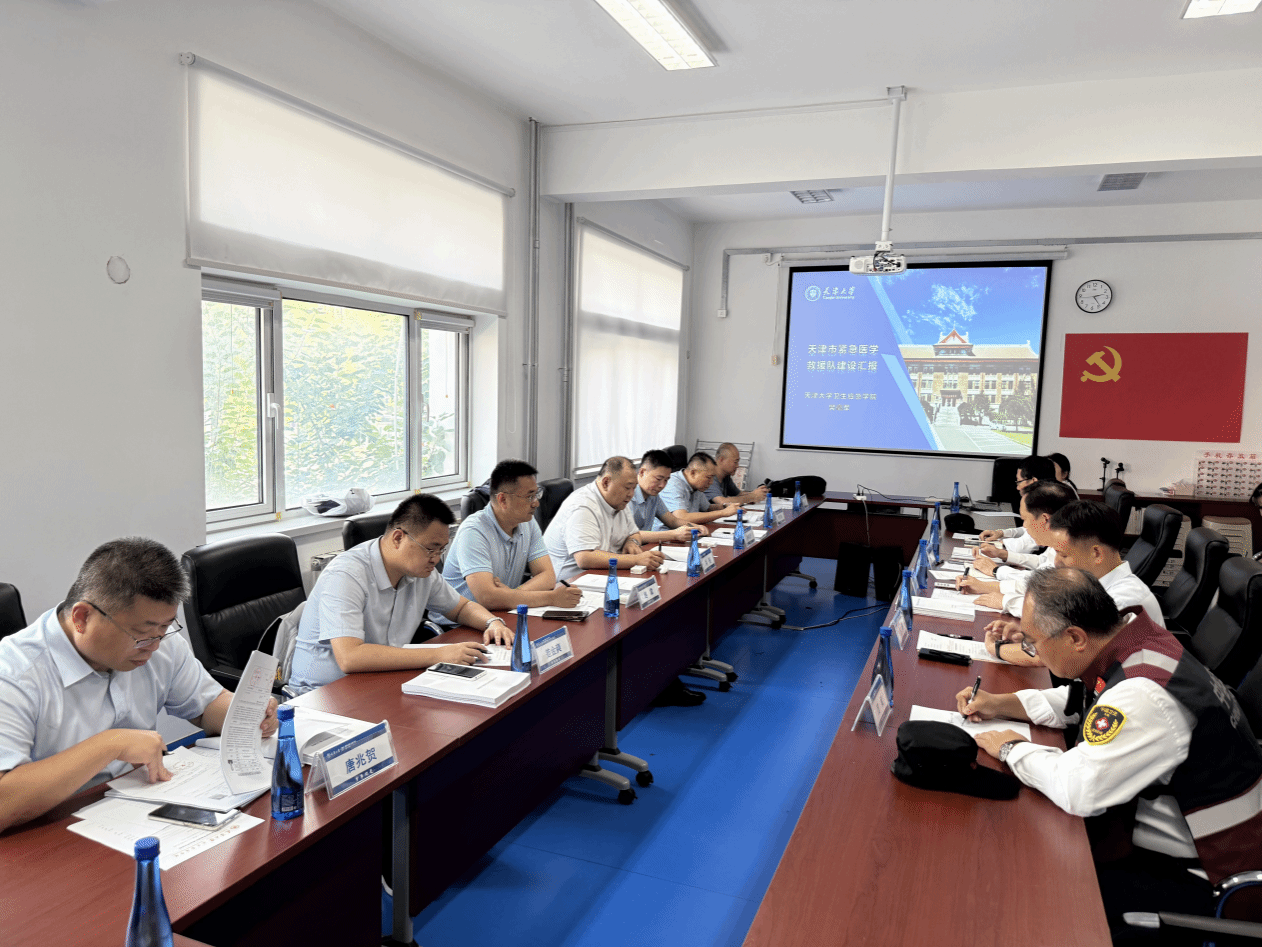 樊毫军院长就天津市紧急医学救援队建设情况进行详细汇报。汇报内容涵盖队伍组建、人员培训、装备配置、制度建设、演练开展等方面,通过丰富的数据和案例,全面展示了救援队从筹建到完成的各项工作成果。