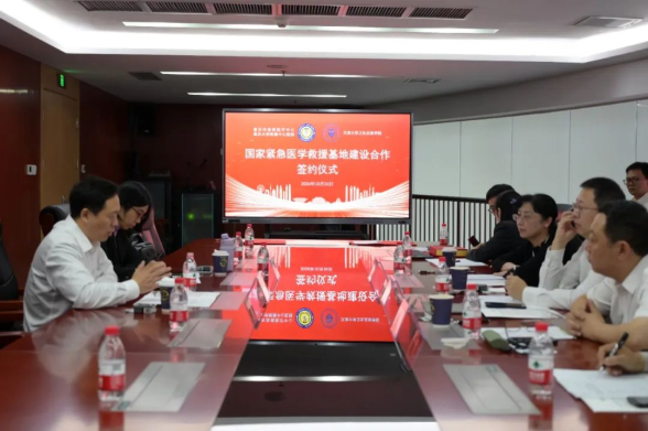 10月24日,我院与重庆市医疗急救中心“国家紧急医学救援基地建设合作签约仪式”在重庆大学附属中心医院会议室圆满举行。天津大学卫生应急学院院长樊毫军,党委副书记、副院长周艳,重庆市卫生健康委员会医疗应急处处长李志丹,重庆市急救医疗中心党委书记马渝,重庆大学附属中心医院院长陈力及医院相关科室负责人参加会议。仪式由陈力主持。
