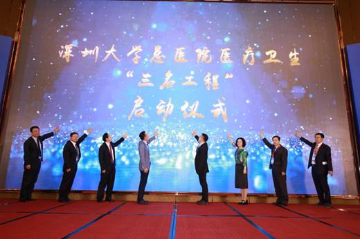 接下来,举行了深圳大学总医院“三名工程”(名医、名医院、名诊所)启动仪式。2019年,深大总医院联合天津大学灾难医学研究院研究团队成功获批了“三名工程”项目,双方将在建设深圳急救与灾难临床医学中心、建立紧急医学救援队、提升灾难现场医学救援技术等三个方面展开合作。通过引进高层次医学人才团队,共同推动急诊科、脊柱骨病科等特色重点学科以临床、医疗、科研为基石,实现加速发展。