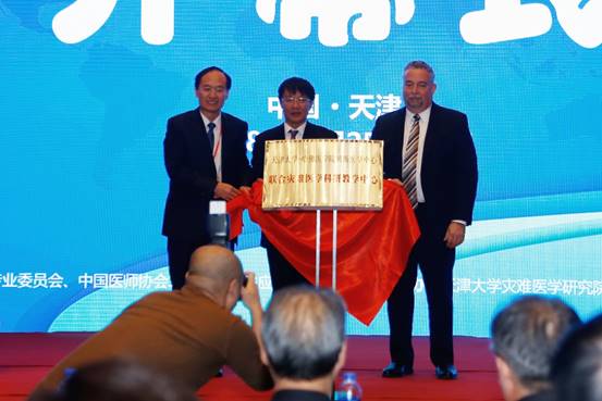 哈佛大学灾难医学训练中心主任、美国国家应急准备指导委员会医学部主任、白宫医学顾问Ciottone教授,天津大学副校长张凤宝,灾难医学研究院长侯世科为科研教学中心的成立进行了揭牌。来自业内近千名专家、学者共同见证了这一历史时刻。