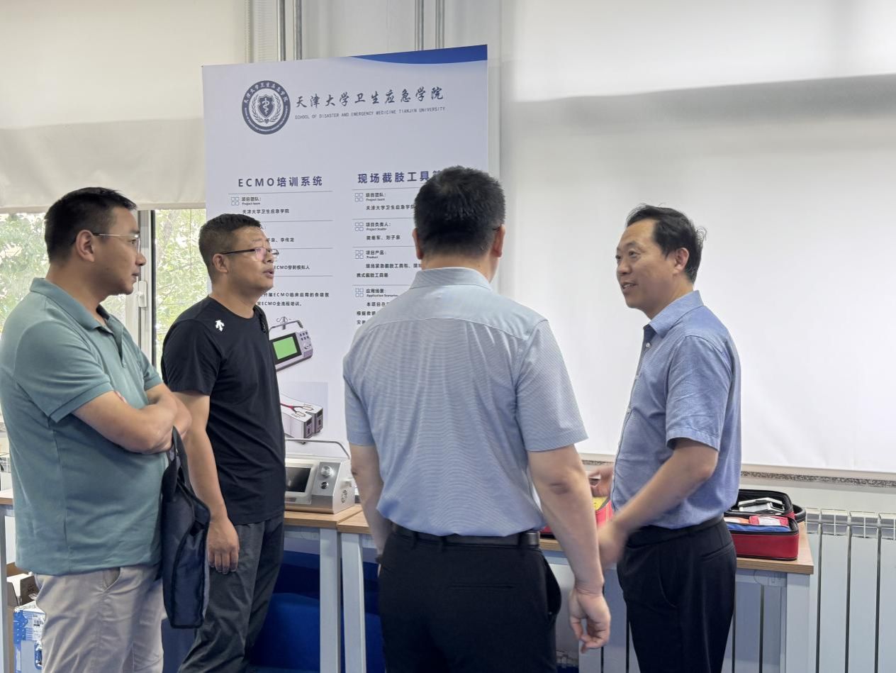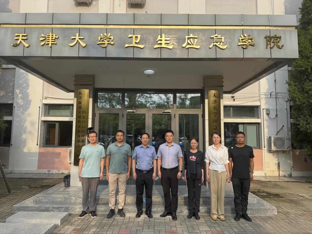 近日,武警部队特色医学中心大校主任杨震、武警部队特色医学中心大校副主任宋冬、医研部卫勤教学组组长陈孝储、重症医学科专业技术上校主治医师于鑫一行莅临天津大学医学部卫生应急学院参观交流。天津大学医学部卫生应急学院院长樊毫军、副院长赵艳梅、院长助理董文龙热情接待。