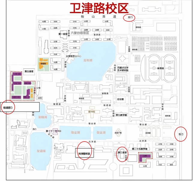 入校路线:请从天大东门、北门(鞍山西道校门)、铭德道门入校
